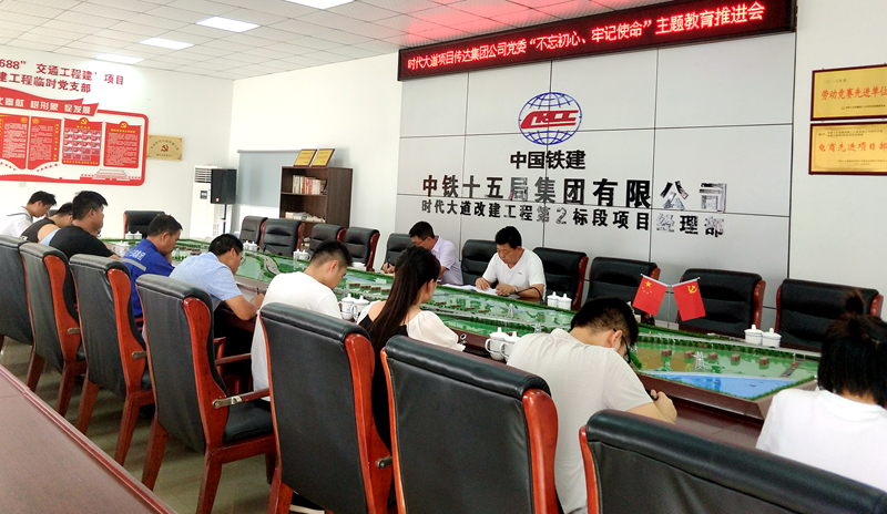 7月16日,時代大道改建工程臨時黨支部召開 “不忘初心、牢記使命”主題教育推進會,會議由項目書記馬忠玉主持,項目部全體黨員、發展對象、入黨積極分子參加。