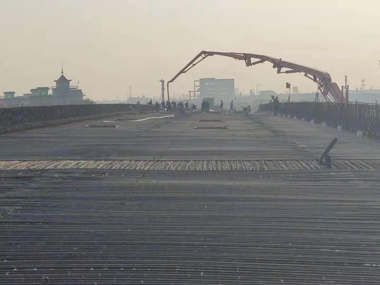 2019年11月10日下午5點,紅十五線改建工程河莊大道分離立交橋40+60+40m現澆箱梁頂板砼澆筑完成。