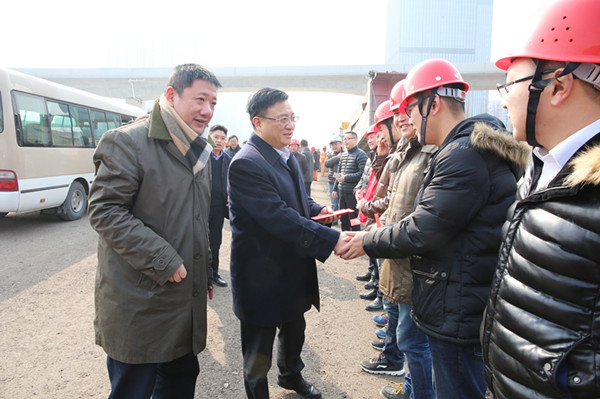 2月6日上午,副市長(zhǎng)項(xiàng)永丹赴機(jī)場(chǎng)公路改建工程市心路互通地面道路施工現(xiàn)場(chǎng)對(duì)工程建設(shè)者進(jìn)行慰問(wèn)。市交通運(yùn)輸局副局長(zhǎng)華歷,副區(qū)長(zhǎng)洪關(guān)良,區(qū)交通運(yùn)輸局局長(zhǎng)姜紀(jì)呈,集團(tuán)董事長(zhǎng)、總經(jīng)理方軍,副總經(jīng)理金文華陪同。