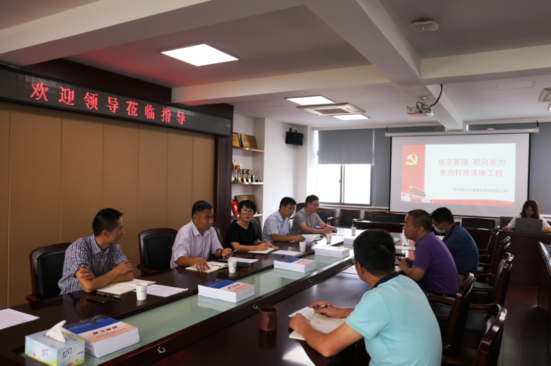 9月29日上午,蕭山區第九紀檢組組長余華英一行來交通建管公司檢查清廉國企創建工作,交通投資集團紀委書記郭維濤隨同指導。首先由我公司黨支部書記楊涌介紹了公司廉政建設情況,從公司的制度、臺賬、宣傳入手,提高認識站位,理清建設思路,從中錘煉隊伍素質,打造清廉隊伍。在黨建引領下走專業化建設道路,四責協同,共同發力,針對建設中的問題,嚴從抓早抓小,挖地三尺,小題大做,嚴把廉政關。