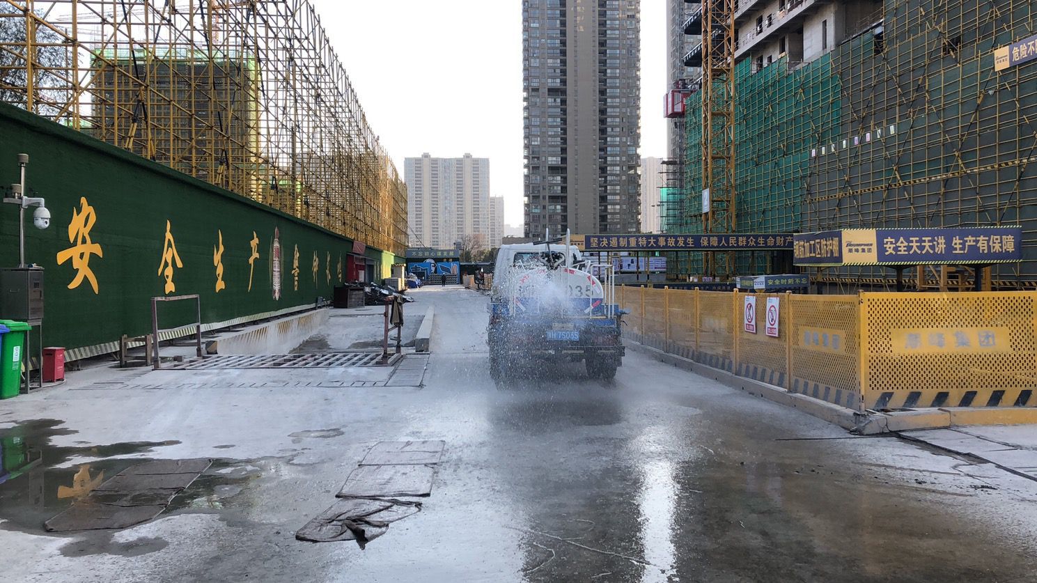 多措并舉,精準(zhǔn)施策。嚴(yán)格落實治理要求,建筑工地在施工期間全天候開啟噴淋噴霧系統(tǒng)(雨雪天除外),在易產(chǎn)生揚(yáng)塵的施工作業(yè)時必須開啟霧炮機(jī);建筑垃圾及時清掃清運(yùn),未清運(yùn)的用土工布進(jìn)行覆蓋;所有工地在停工前做好圍擋檢查和破損修復(fù),裸土及顆粒物一律使用土工布覆蓋;安排專人對車輛進(jìn)出工地的出入口及周邊道路進(jìn)行沖洗,確保建筑工地及周邊環(huán)境干凈整潔。
