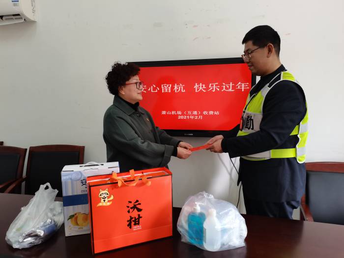 根據(jù)杭州市發(fā)改委和蕭山區(qū)財(cái)政局相關(guān)要求,認(rèn)真做好“留杭送紅包”發(fā)放工作和“十送”關(guān)愛行動(dòng)。2月7日下午,公司工會(huì)主席陳強(qiáng)前往蕭山機(jī)場(chǎng)(互通)收費(fèi)站,對(duì)留杭過年職工陳杰進(jìn)行慰問,工會(huì)副主席葉佳琪陪同。