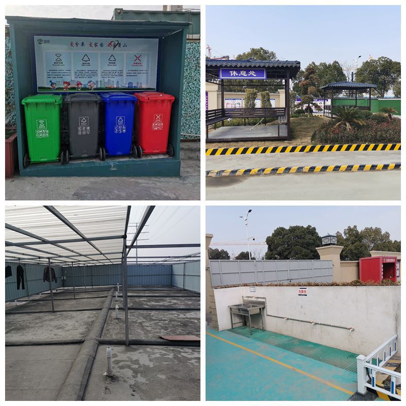除此之外,生活區(qū)還設(shè)置有垃圾分類專區(qū),衣物晾曬區(qū)、鞋子晾曬區(qū)、專門的生活區(qū)抽煙亭等。同時(shí)設(shè)置講評(píng)臺(tái),用于班組的日常活動(dòng),每日晨會(huì),給班組反復(fù)增加安全教育,提醒安全事項(xiàng)。生活區(qū)的有序管理也是工地施工現(xiàn)場管理中的重要環(huán)節(jié),舒適溫馨的環(huán)境有助于工地整體面貌的提升,令人心情愉悅的同時(shí),可有效避免安全事故的發(fā)生,起到事半功倍的目的。