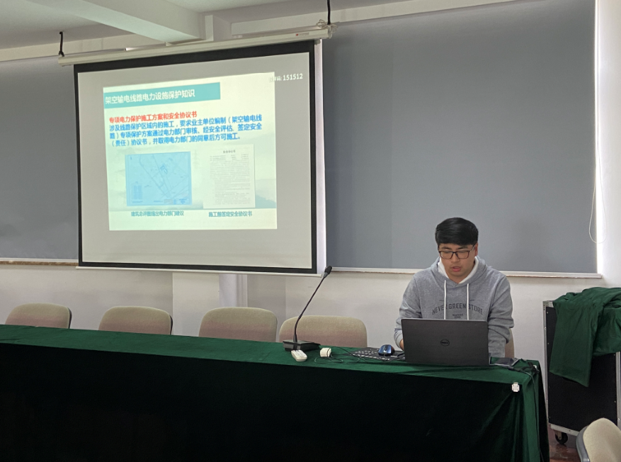 之后會議安排安全部杜承超針對施工現場高壓線路交叉施工的安全管理做了PPT安全知識培訓。為員工樹立起了“生產必須安全,安全才能生產”、“安全是最大的效益”的廣泛意識。