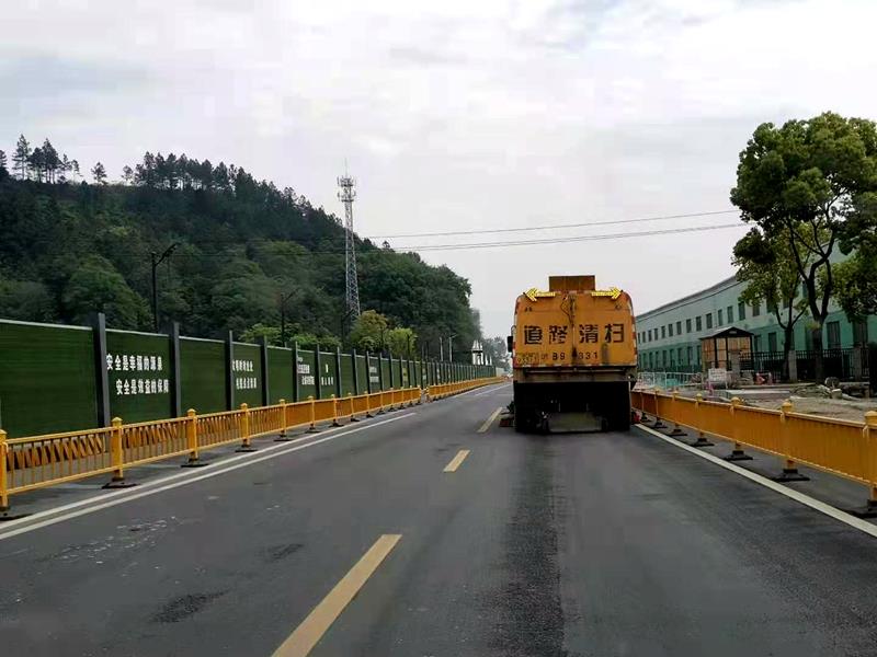 施工單位路橋工程公司根據(jù)邊通車邊施工的交通組織方案,對道路進(jìn)行半幅封閉施工。在管控施工質(zhì)量的同時(shí),重視工程施工的標(biāo)準(zhǔn)化管理,對施工路段進(jìn)行圍擋設(shè)置并每日開啟噴淋系統(tǒng),應(yīng)用霧泡機(jī)、揚(yáng)塵監(jiān)測系統(tǒng)控制控制揚(yáng)塵,并對裸土實(shí)行全覆蓋,安排灑水車、掃地車不定期對施工區(qū)域進(jìn)行灑掃清洗,實(shí)行文明施工、安全施工,確保10月底完成全部施工任務(wù)。