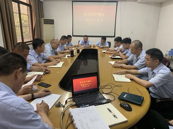 6月3日上午,客運分公司在二樓會議室召開六月安全生產例會,主管助理及以上人員參加,會議由分公司副經理黃曉健主持。會上首先各部門對上月工作進行了總結,對存在問題及下步工作計劃進行了匯報。隨后黃曉健總結了5月安全工作,要求各部門重點做好以下工作:一、根據分公司安全生產月活動方案做好平安護航建黨百年安全隱患專項排查整治工作;二、做好安全教育培訓工作;三、做好斑馬線禮讓等活動日常檢查工作;四、做好反三違宣教工作;五、做好安全生產月宣傳工作;及時匯報緊急信息;六、做好值班值休工作,各部門主管務必堅守崗位,手機保持24小時開機狀態;七、做好全員消防安全教育培訓工作;八、做好疫情常態化工作及安全告誡工作。隨后分公司副經理胡專松指出:一、做好疫苗接種持續動員工作;二、做好高考用車任務相關宣傳工作。