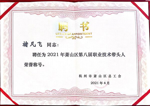 近日,由蕭山區(qū)總工會組織的“第八屆職業(yè)技術帶頭人”評選工作已經(jīng)順利結束,由長運公司選送的褚凡飛同志在激烈的角逐中脫穎而出,榮獲2021年度“職業(yè)技能帶頭人”榮譽稱號。