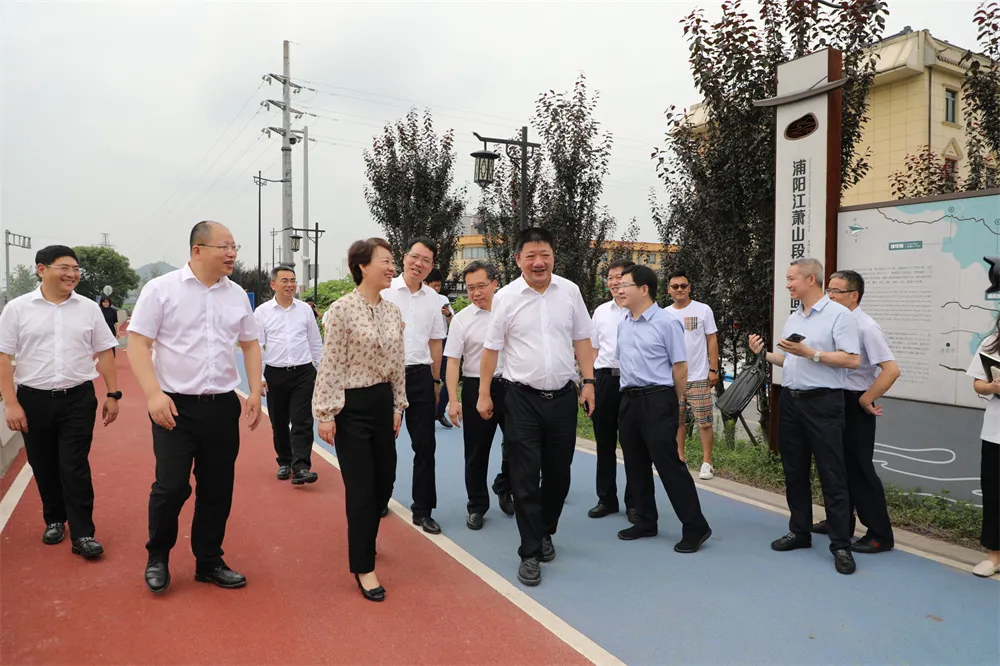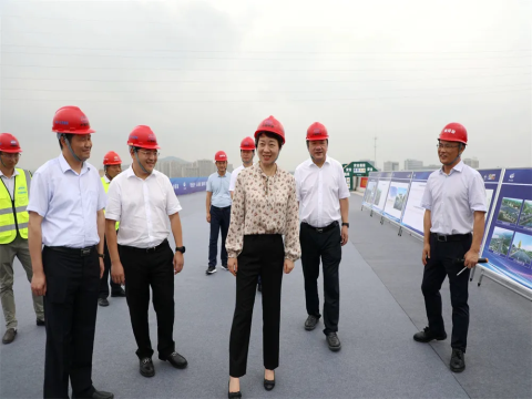佟桂莉一行先后來到時代大道改建、浦陽江治理三期工程現(xiàn)場,仔細(xì)查看項目建設(shè)進(jìn)度,認(rèn)真聽取情況匯報,并充分肯定了前階段工作成效。
