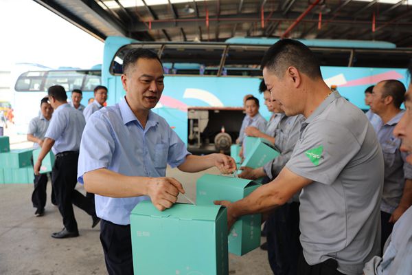 驕陽烈日,暑氣炎炎,入伏以來,氣溫持續走高。近日長運公司黨總支書記、總經理湯偉東,黨總支委員、副總經理周楚軍、潘國華,總經理助理、客運分公司經理吳俊杰等領導一行前往各單位慰問奮戰在一線的干部職工,并為他們送去毛巾、洗手液等清涼防暑物品。