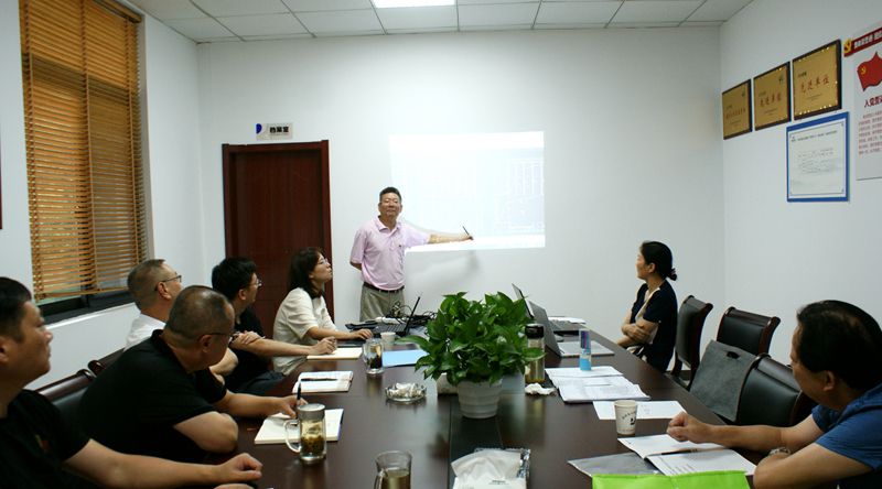 為提高工作效率,簡化工作流程,會議采用面對面的方式進行工作交流。會議通過設計單位投影展示講解堆料場鋼棚改造方案,現場確定節點部分的工程使用材料與型號規格,現場商討工作難點,公司負責人現場定下工作目標,集思廣益,最大程度地加快拌和中心場地改造提升步伐。