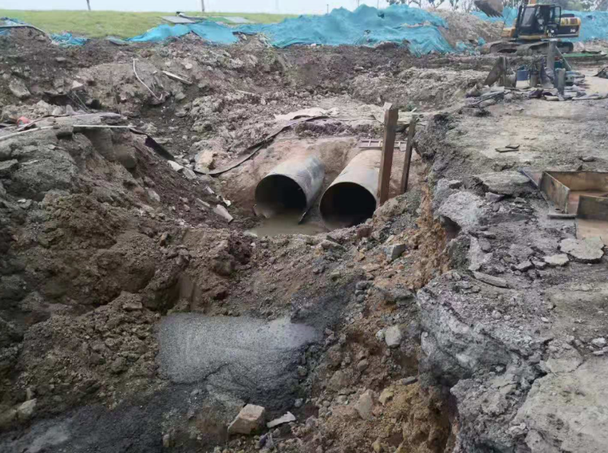 自2018年DN1400原水管開工以來,交通建管公司聯合濱江水廠和環境集團所屬的施工、設計單位進行多次對接溝通,協同聞堰街道前往現場踏勘二十余次,召開管線遷改推進會數十次。在各級領導的支持和努力下,近期完成聚望名座至亞太路段割接。割接當日天氣驟變,對管道施工造成了不小的困難。管道施工單位頂著暴雨、連續奮戰兩個通宵,終于完成了原水管的割接工作,為時代大道西側匝道樁的建設掃清了障礙,確保了該工程的順利推進。
