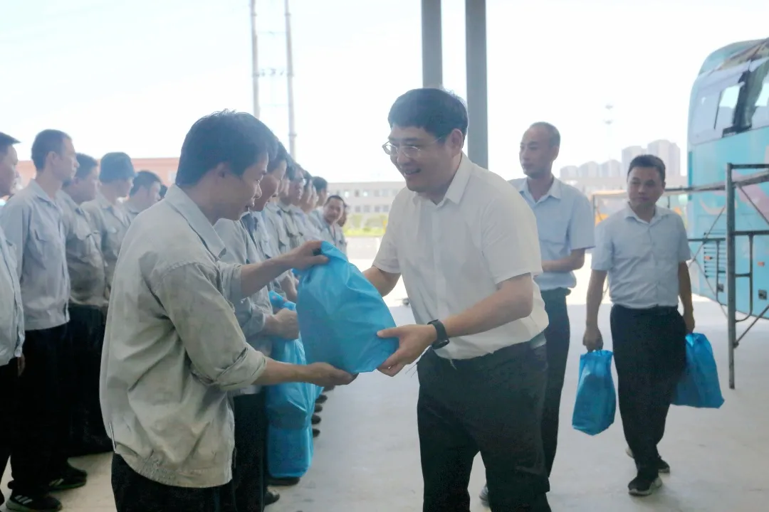 8月30日-31日,集團(tuán)領(lǐng)導(dǎo)班子帶隊分批看望慰問堅守在高溫現(xiàn)場的一線工作者,為他們送去防暑降溫慰問品,并囑咐大家做好防溫降暑工作,合理安排作業(yè)、休息時間。