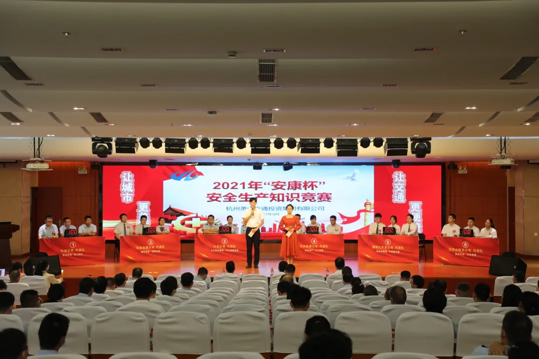 集團2021年“安康杯”知識競賽活動分預賽、決賽兩個環節,采用“理論筆試+現場競答”形式進行。共有12支隊伍參加競賽。經過9月18日預賽晉級選拔,交投出租車公司、機場高速公司、公交公司、交投能源公司、浦陽江開發公司、長運公司六支代表隊順利進入決賽,角逐前三名。