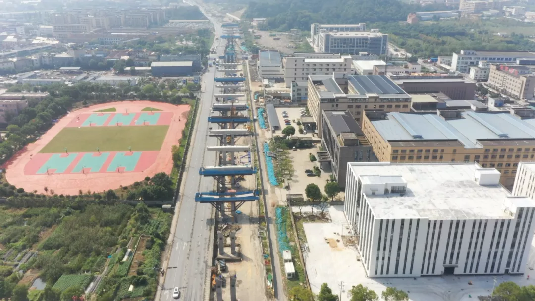 目前,工程主線高架橋下部結(jié)構(gòu)完成51%、上部結(jié)構(gòu)完成14%。