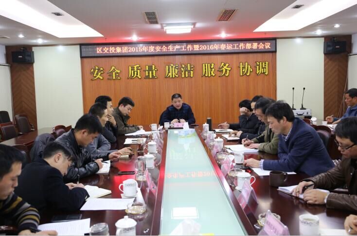 1月20日下午,集團召開2015年度安全生產工作總結暨2016年春運工作部署會議。集團班子領導、集團公司各部室負責人、所屬各單位主要負責人及分管安全生產工作相關負責人參加了本次會議。