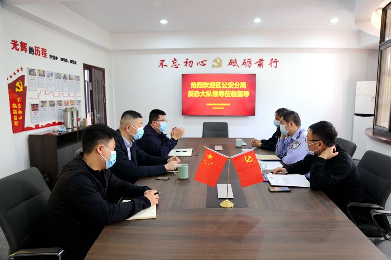 近日,蕭山區(qū)公安分局反恐大隊(duì)教導(dǎo)員楊國(guó)鋒一行蒞臨交投能源公司就反恐維穩(wěn)迎亞運(yùn)工作進(jìn)行指導(dǎo)調(diào)研,公司董事長(zhǎng)趙宇、總經(jīng)理黃博斌及職能部室負(fù)責(zé)人陪同。