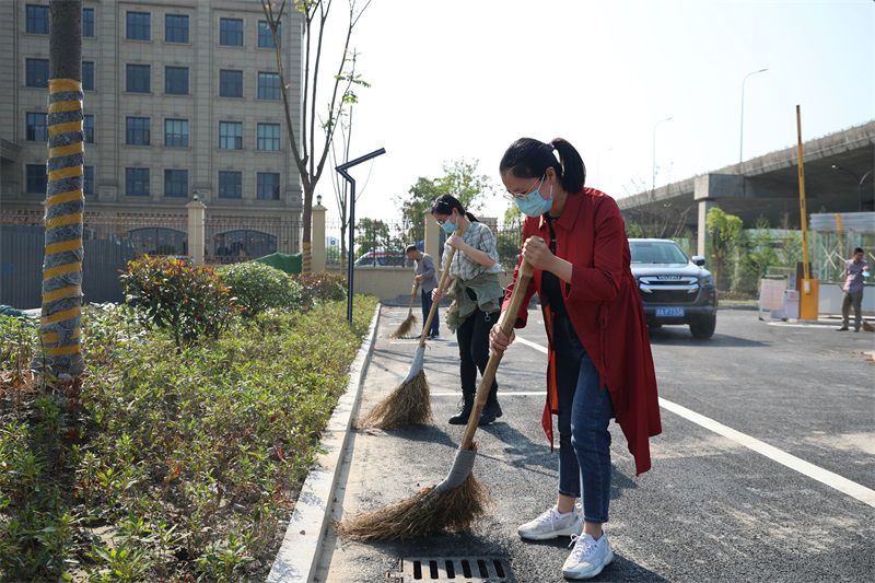 此次黨日活動(dòng)主題為“迎亞運(yùn) ——志愿保障服務(wù)”,同時(shí)響應(yīng)即將到來的國(guó)際“五一”勞動(dòng)節(jié)。黨員志愿者們致力于維護(hù)亞運(yùn)會(huì)保障工程的美潔,紛紛拿出工具清掃起來。頂著將近30度的太陽(yáng),189個(gè)車輛停車位上的落葉及白色垃圾在15名黨員和入黨積極分子志愿者的共同努力下,耗時(shí)50分鐘就清理完畢,呈現(xiàn)出光鮮亮麗的形象。