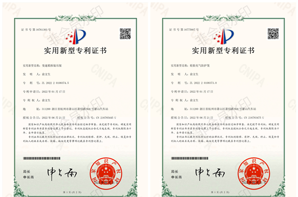 近日,長運公司俞文生汽車維修技能大師工作室領銜人申報的“輪胎充氣防護籠”和“變速箱拆裝吊架”發明專利成功獲得國家知識產權局授權,取得發明專利證書。