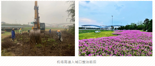 主要是對全長14公里的機場公路沿線景觀進行提升改造,項目成立專班人馬和設計團隊進行現場指導施工,工程分三個標段分項施治。施工內容包括綠化景觀、道路改造、小品雕塑以及燈光亮化等,工程于2022年5月完工。