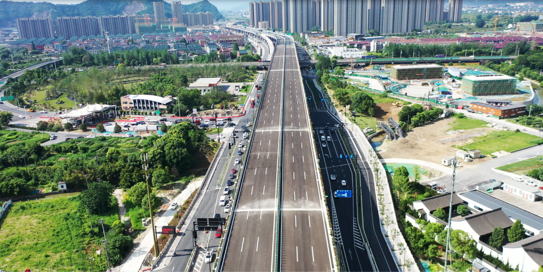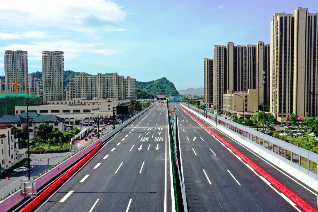 時代大道南延(繞城至中環段)工程江北先行段試通車,有效緩解了原有時代大道地面道路的通行壓力,使得聞堰街道到浦陽江以北段沿線社區、居民出行的車流量可以得到有效緩解。