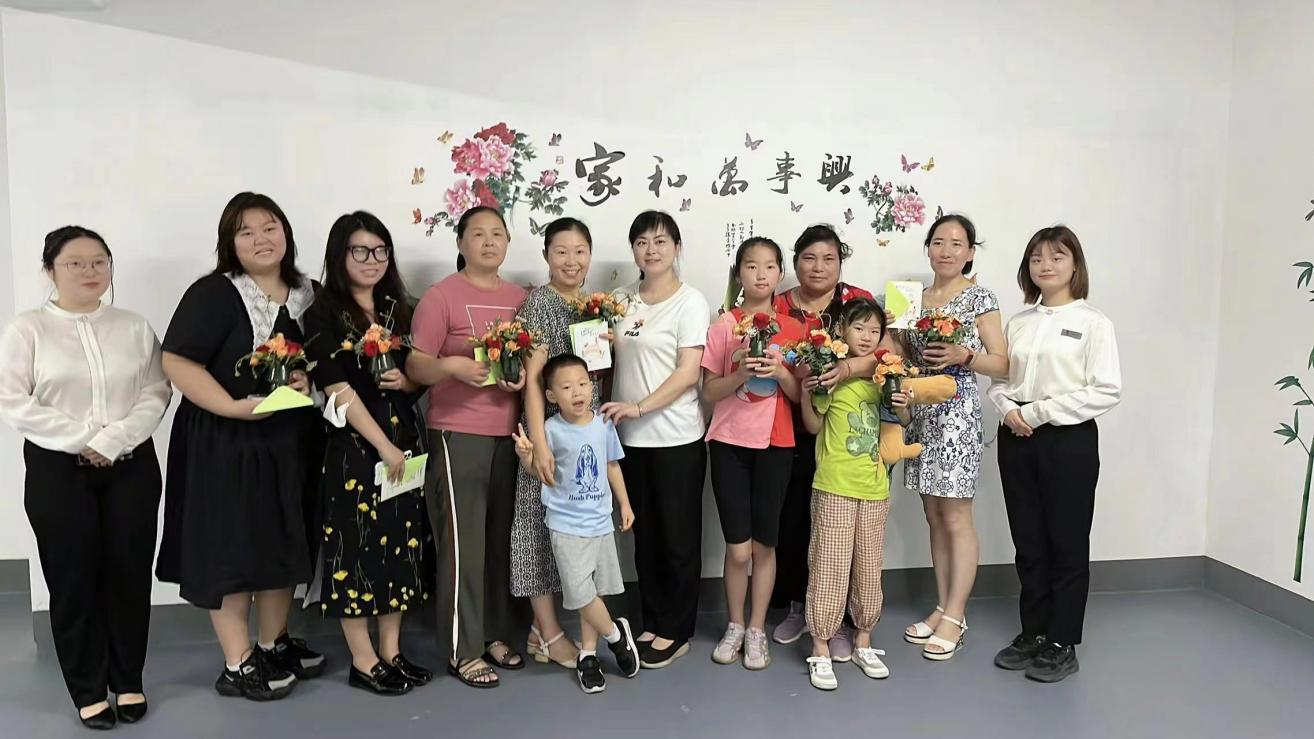 新鮮美麗的花朵,整齊干凈的桌椅,香氣四溢的果茶,客服部的小伙伴們早早地就將我們的休閑服務區布置得美美的,靜待邀約的業主老師和家屬們的到來。待人到齊后,花藝老師給大家講了今天活動的流程,然后就開始了今天美好的插花手工課。隨著老師的帶引,現場的各位來賓們手起剪刀落,將花枝修剪得長短不一,接著一枝枝地插入花泥瓶中,這里撥弄下,那里再加點葉子,沒過多久,一盆盆造型優美,錯落有致的插花作品就誕生了。大家興奮地相互欣賞評論,我們今天現場的幾位小嘉賓們也是不甘落后,在家長的幫助下,小朋友的作品絲毫不輸給在場的阿姨們,得到了所有人的點贊表揚!