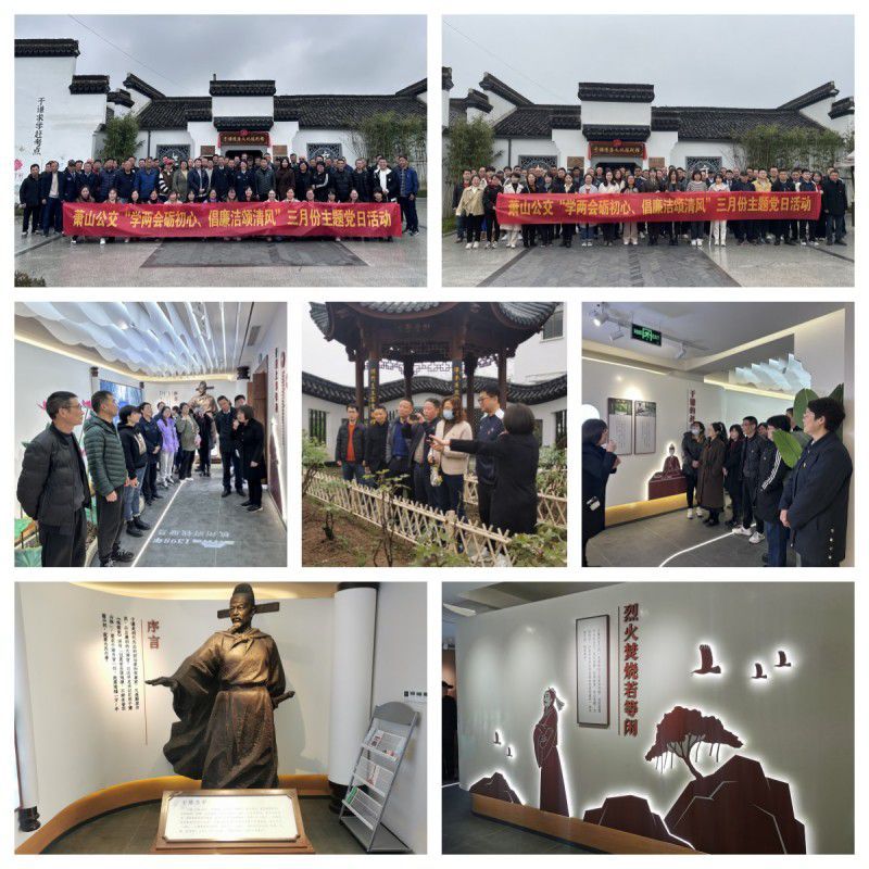 為深入貫徹黨的二十大精神和全國兩會精神,扎實推進全面從嚴治黨,筑牢黨員干部思想防線,增強拒腐防變能力,持續營造風清氣正的良好氛圍。3月21日至22日蕭山公交開展“學兩會礪初心 倡廉潔頌清風”主題黨日活動,組織全體黨員乘坐小蓮清風專線前往于謙紀念館、于謙祠參觀學習,通過沉浸式、體驗式、貫穿式的黨課形式,將于謙勤政愛民、敢于擔當的高尚精神,堅貞不屈、盡忠報國的民族氣節,剛正不阿、兩袖清風的道德操守賡續傳承,厚植黨員忠誠干凈擔當的鮮明底色。
