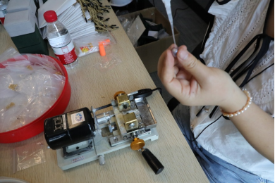 將珍珠進(jìn)行打孔,挑選配飾,在老師的指導(dǎo)下將珍珠制作成美麗的項(xiàng)鏈掛墜或耳釘。