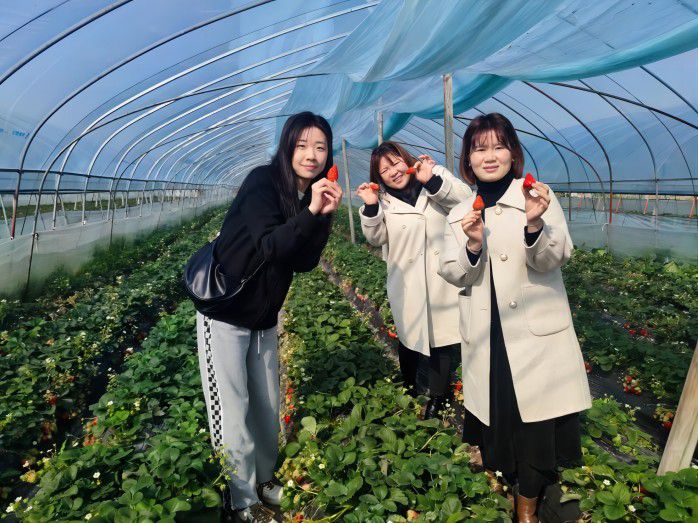 伴隨著陣陣春風,體驗采摘草莓的女同胞們穿梭其間,心情格外愉悅。歡聲笑語間,大家邊分享著生活和工作中的趣事,邊品嘗自己采摘的新鮮草莓,一張張充滿自信和喜悅的臉,充分展示了新時代女性團結友愛、積極進取的精神風貌。