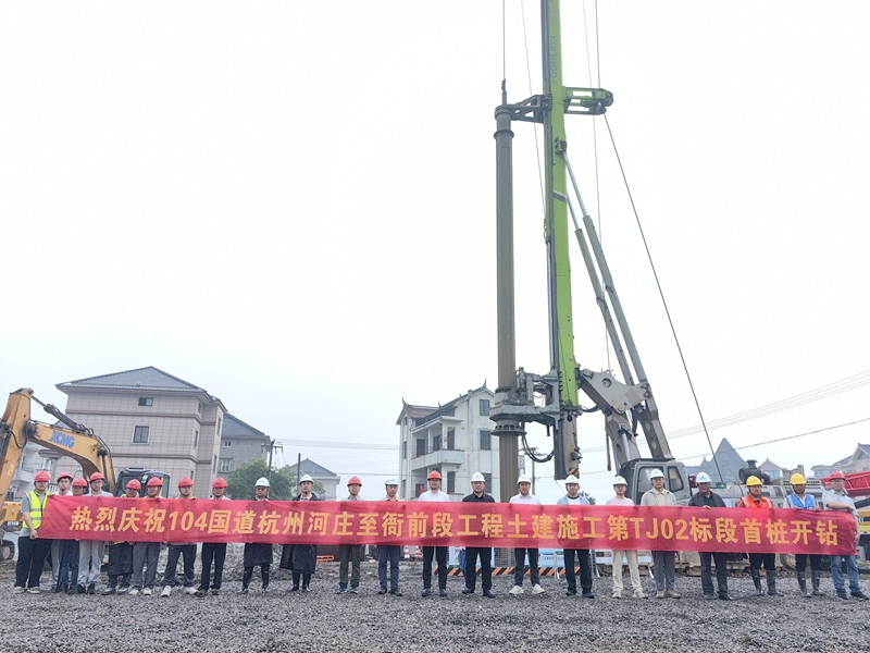 今天上午,104國(guó)道杭州河莊至衙前段工程第TJ02標(biāo)首樁、第TJ01標(biāo)二工區(qū)首樁開(kāi)鉆,標(biāo)志著104國(guó)道杭州河莊至衙前段工程全面開(kāi)工。
