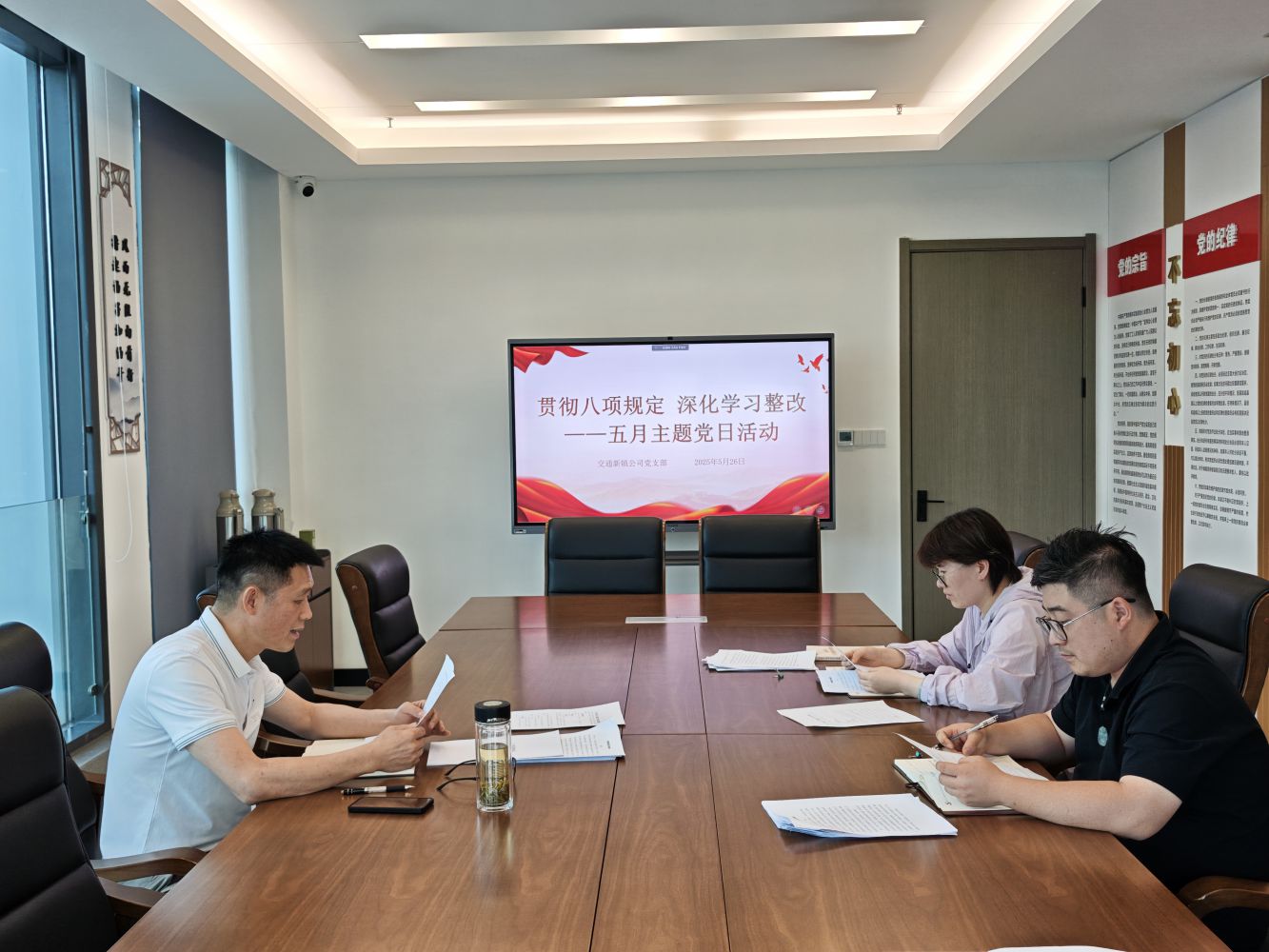 為扎實推進深入貫徹中央八項規定精神學習教育,推動學習教育走深走實,5月26日,交通新鎮公司黨支部召開“貫徹八項規定 深化學習整改”五月主題黨日活動。