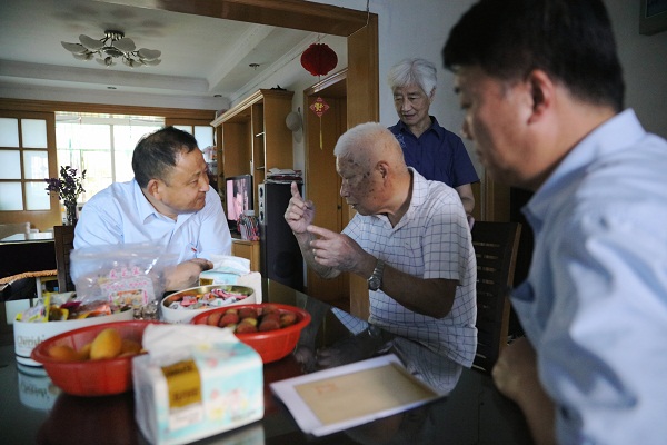 在公司黨委書記林雄衛(wèi)的帶領(lǐng)下,公司黨委委員周楚軍、黨員代表葛仲軍等一行先后來到離退休黨員俞金堂和困難黨員陳國榮家中探望,仔細(xì)詢問了他們近來的生活和家庭狀況。俞金堂今年已經(jīng)90歲高齡,因聲帶做過兩次手術(shù),說起話來十分吃力。但見到昔日的同事,他顯得十分高興。而陳國榮因妻子長期患病,家中經(jīng)濟(jì)拮據(jù),好在女兒即將從大學(xué)畢業(yè),言辭間滿是為人父母的自豪與期待。離開前,黨員代表們向兩位黨員送上了慰問金和誠摯的祝福,并表示公司黨委會一如既往地關(guān)心和支持老黨員們,使他們時刻感受到家一樣的溫暖。