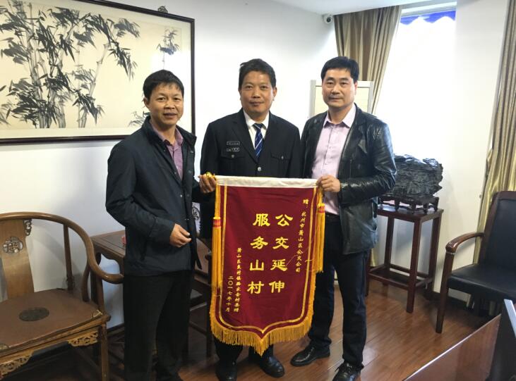 11月15日,蕭山區戴村鎮駱家舍村委代表專程來到公交公司,將一面印有“公交延伸,服務山村”的錦旗送到公司總經理吳根法手中,以表達對公交工作的大力肯定和贊揚。
