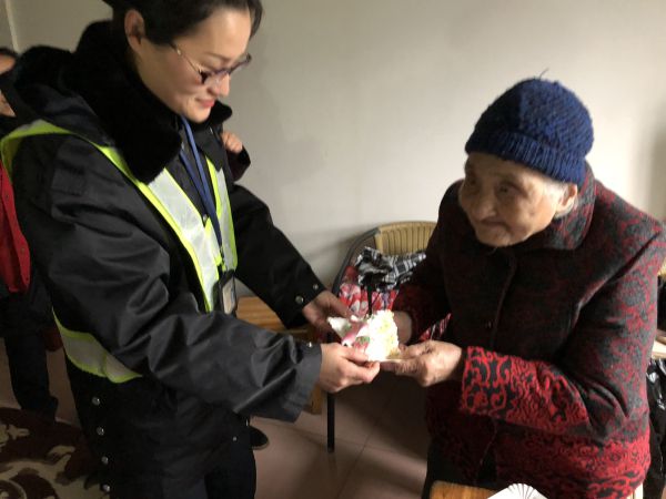 12月15日上午,公路開(kāi)發(fā)公司下屬浦陽(yáng)收費(fèi)站團(tuán)員青年來(lái)到結(jié)對(duì)敬老院為百歲老人慶祝生日,為她們帶去了蛋糕、水果以及生日的祝福。