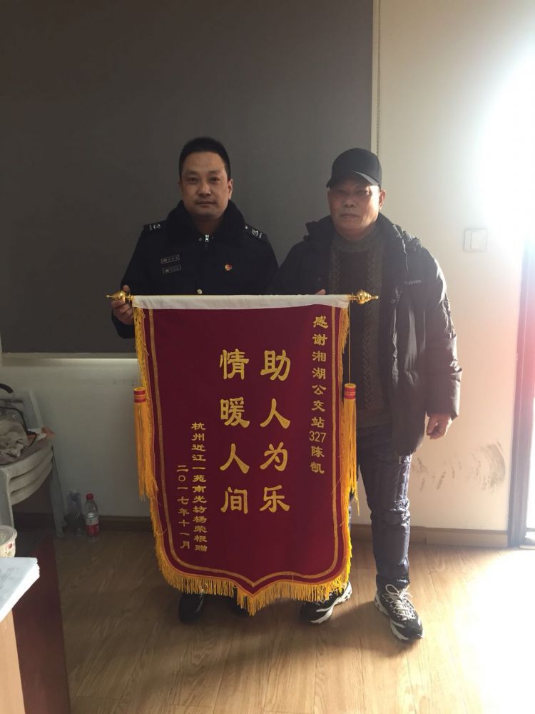 12月26日,一位手里拿著錦旗的老大爺興沖沖地走進公交公司六車隊辦公室,他激動地說:“我要謝謝你們327路的駕駛員陳凱師傅”。原來11月30 日下午,楊大爺剛從浙一醫院出院回家,身體虛弱的他手里提著一些日用品來到吳山公交站坐車,327路陳師傅看到楊大爺向車走來,就急忙上前扶他上車并安排好座位和手里的物品,抵達臨浦新站后陳師傅把楊大爺扶下車,問他家住哪里,給老人找了一輛車并安頓他坐好才放心離開。老人平常一個人住,昨天剛出院,回家途中遇到這么一位熱心腸的駕駛員他特別激動,一定要親自把錦旗送來,對陳師傅和杭州公交道一聲謝。