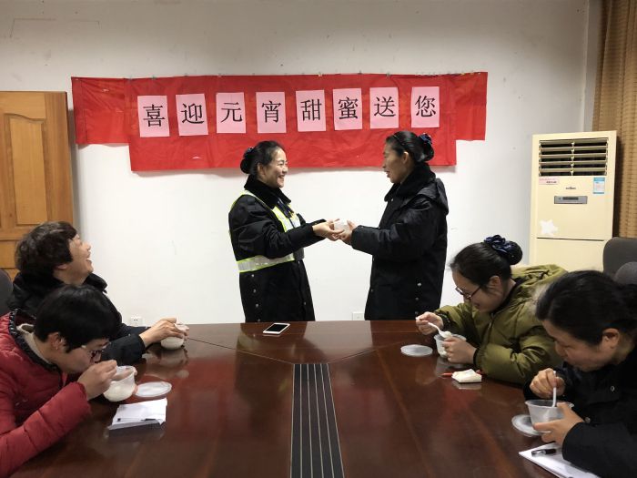 一早,志愿者們就準備好了熱乎乎的湯圓,在站領導的帶領下,端著一碗碗熱騰騰的湯圓送至每位司乘朋友手中。顆顆飽滿圓潤的湯圓之間,都凝聚了志愿者們的濃濃服務之情以及深深地節日祝福。不少司機特意將車停到安全地帶,美滋滋地吃起湯圓,讓這些司乘人員倍感溫暖。之后,志愿者們又為工作的同事送上了湯圓,大家都露出了甜蜜的笑容。