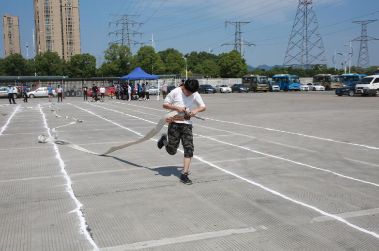 活動分為消防技能比武理論測試和實操比賽兩部分。其中,消防理論測試于6月14日下午在公交公司城南公交停車場培訓中心教室舉行,各代表隊36名參賽隊員參加理論測試,成績納入團體總分;實操比賽于6月15日下午舉行,共設“雙手提水帶4*50米接力跑”、“消防水帶一人二帶操作”、“4公斤干粉滅火50米往返跑”、“消防栓出水打靶”四個項目,參賽選手100余人。經過激烈角逐,公路開發公司、機場高速公司和公交公司代表隊分獲團體前三名。