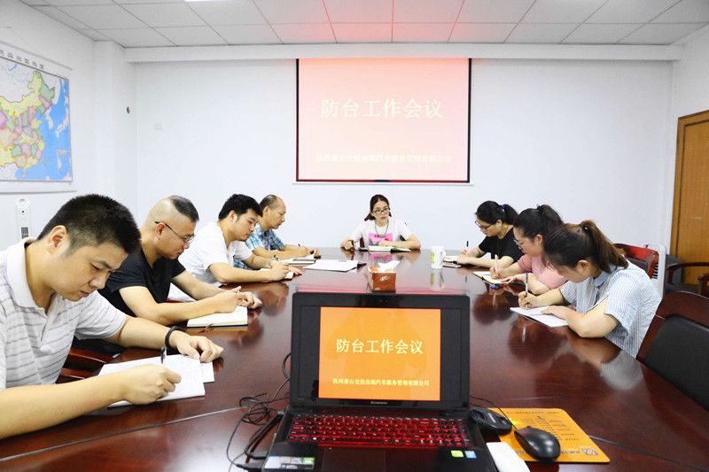 會上,總經理王建維首先傳達了集團的防臺會議精神及虞總在會議上對防臺抗臺工作的相關要求。同時,結合公司實際布置臺風防御工作要求:一是抓好隱患排查,不留死角,加強對辦公區域、出租車輛的安全隱患排查力度;二是加大宣傳,形成合力,加強對行政人員、駕駛員的防臺宣傳教育工作,利用微信、短信等方式提升防臺意識;三是加強預警,密切關注臺風動態,嚴格落實值班、值守制度,及時響應預警信號。