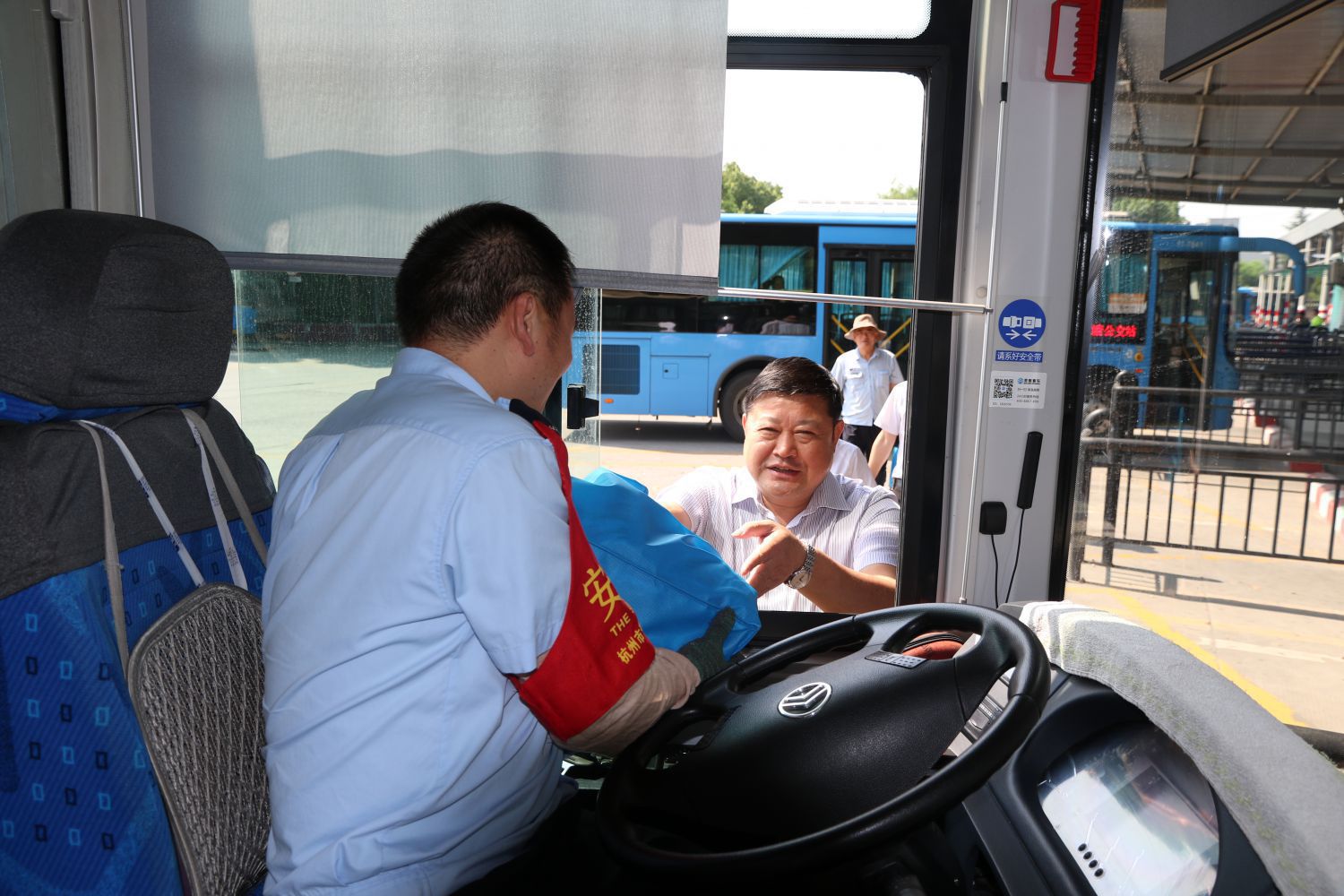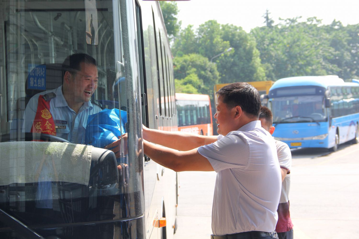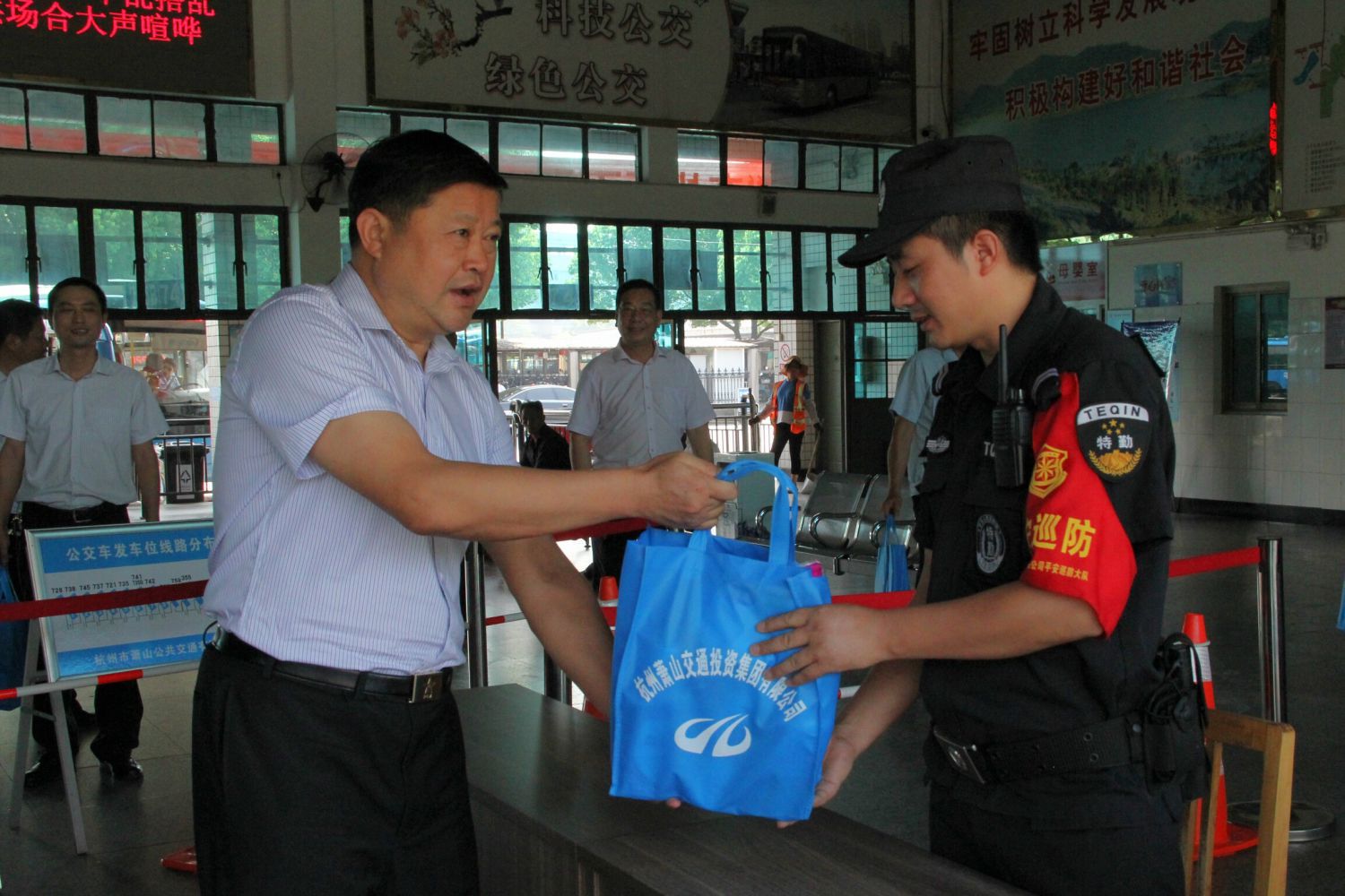 7月26日上午,交投集團黨委書記、董事長祝關翔等領導一行蒞臨公交公司通惠路公交站慰問高溫下奮戰在一線的公交員工。公司吳根法總經理、王黎洪書記等班子成員陪同。祝關翔董事長與公交司機、站員、保安、后勤保障人員一一握手,送上夏季清涼用品等慰問品,并親切的叮囑大家要做好防暑降溫措施,合理安排休息,保持良好的精神狀態,確保高溫下行車安全。集團領導的到來,讓公交一線員工倍感清涼與振奮,司機們紛紛表示將牢記董事長的叮囑,確保安全行車。