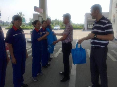 7月27日下午,集團黨委委員、副總經(jīng)理韓朋朋一行蒞臨交投能源公司所屬建盈加油站看望慰問高溫一線職工,公司領(lǐng)導(dǎo)班子陪同。韓總視察了建盈南加油站防滲改造現(xiàn)場,關(guān)切地詢問了一線職工的工作和生活情況,對頂烈日、冒酷暑、戰(zhàn)高溫,始終堅守工作崗位的加油員們給予肯定,并一再叮囑大家要科學(xué)合理安排作息時間,在保證良好服務(wù)工作的同時注意身體,做好防暑降溫措施。集團領(lǐng)導(dǎo)的貼心關(guān)愛,讓加油一線的員工感受到絲絲清涼,大家紛紛表示要堅守崗位,全力以赴做好加油服務(wù)工作,為油站安全平穩(wěn)運營保駕護航。