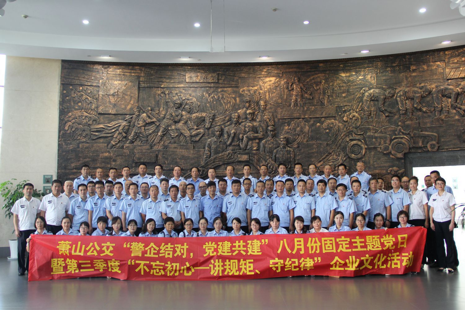 此次活動旨在以建黨97周年系列活動為契機,以“不忘初心、牢記使命”教育為抓手,通過共學、共做、共促,提升單位黨建工作水平,實現取長補短、互促共贏、資源共享;是蕭山公交鞏固“兩學一做”學習教育成果的重要舉措,也是深化警企合作、提升黨建工作水平、打造“藍色廉潔型”公交的一個創舉。今后,雙方將進一步探索警企黨建資源整合新思路、新模式,發揮各方優勢,做到有機結合,將政治優勢轉化為發展優勢,警企攜手開創新輝煌!