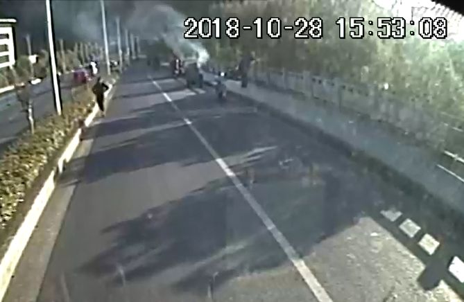 10月28日下午時許,大江東車隊733B路司機童志祥駕駛公交車行至新城隧道北口附近時,突然發現一輛裝滿貨物的電動三輪車發生自燃,濃煙滾滾,火光沖天。電動車車主焦急萬分,站在路邊無助的求救。于是童師傅童師傅當機立斷,馬上拉起手剎,將車停靠在安全區域,在向車內乘客做好解釋安撫工作后,迅速拎起車上的滅火器沖下車。