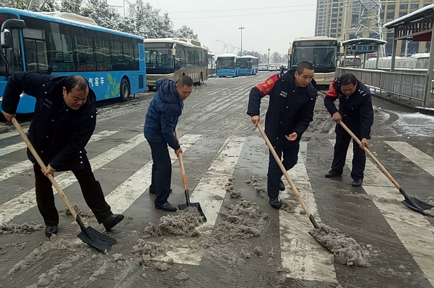 參加抗冰雪任務(wù)的不僅有各級(jí)管理干部,還有來自各個(gè)部室、車隊(duì)、分公司、管理中心的一線司機(jī)、站員、站場保安、物業(yè)人員、修理工、公共自行車值守人員、黨團(tuán)突擊隊(duì)隊(duì)員等。大家不畏嚴(yán)寒,相互配合、齊心協(xié)力,你鏟我掃,一派熱火朝天的景象,雖室外氣溫低至零度,但大家的抗擊熱情只增不減,越戰(zhàn)越勇。特殊時(shí)期彰顯公交本色,關(guān)鍵時(shí)刻盡顯責(zé)任擔(dān)當(dāng)。大家心往一處想,勁往一處使,擰成一股繩,積極面對(duì)這場抗擊冰雪的硬仗,確保了行人行車的安全暢通。