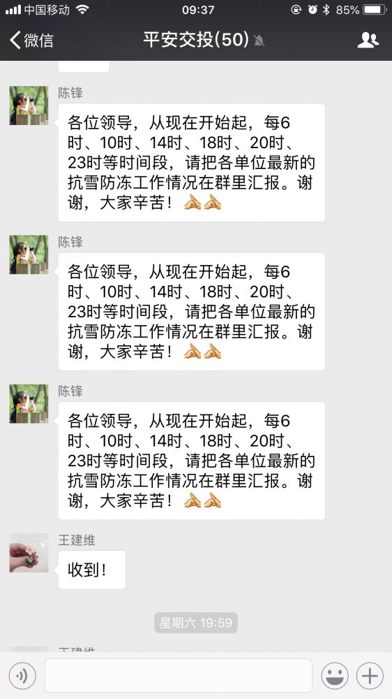 除通過紙質(zhì)、電話方式布置工作外,集團(tuán)領(lǐng)導(dǎo)通過“平安交投”微信號及時傳達(dá)上級要求,布置具體工作