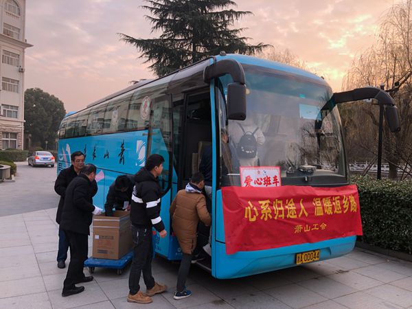 發(fā)車當日,蕭山區(qū)總工會與蕭山長運公司為這些愛心班車旅客們準備了水果、牛奶等愛心早餐。歡送在蕭外來務工人員回家過年,把黨和政府的關懷和工會組織的溫暖送到農民工兄弟心坎上,讓他們感受到蕭山人民的愛與關懷。