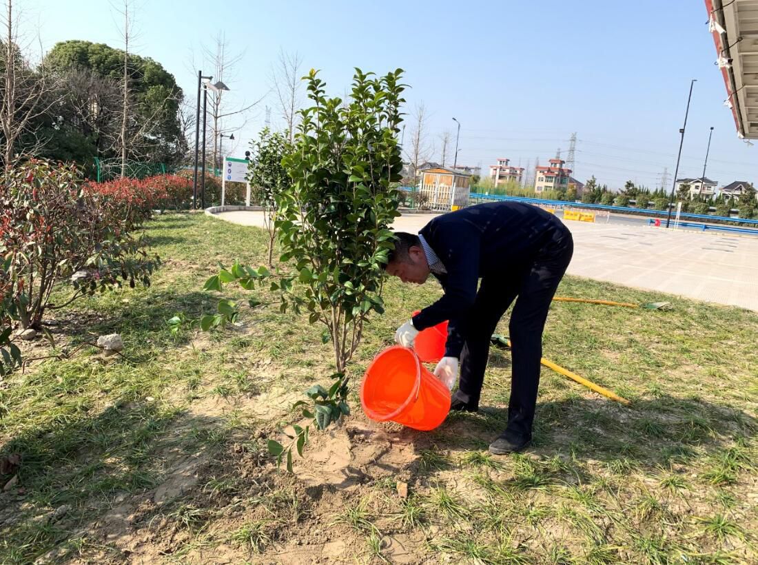 活動開始,大家以小組為單位,分別對負責區內環境衛生進行整治,包括垃圾清掃、垃圾分類、衛生死角清理、除雜草等。隨后,由公司領導班子帶頭在站內進行綠植栽種,大家分工明確,你挖坑、我埋土、他澆水,植樹現場熱火朝天、氣氛活躍。