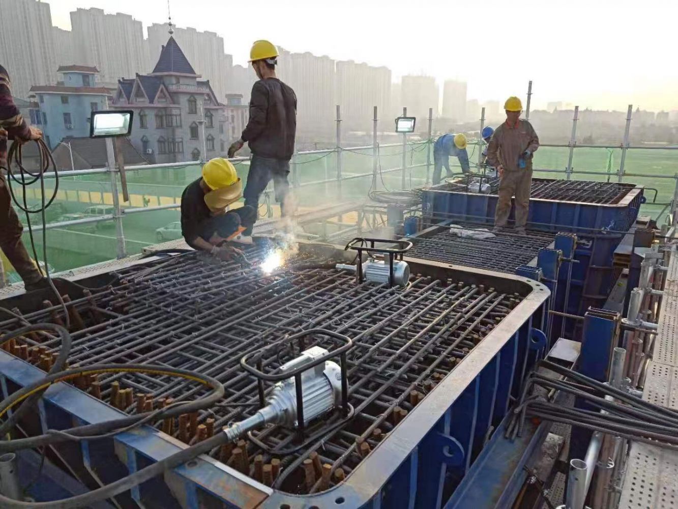 為早日完成首個墩身的澆筑任務,建管公司領導、相關負責人未雨綢繆,多次現場勘察與施工單位共同努力下,堅持“高起點開局,高標準管理,高效率推進”的總要求,優化施組、科學組織,對模板的定制、拼裝,混凝土的拌和、輸送、澆筑等各個環節,做了認真準備。同時,在施工過程中通過加強安全教育,做好安全防護,確保施工安全。共完成鉆孔樁36根,承臺3個,墩柱1個。