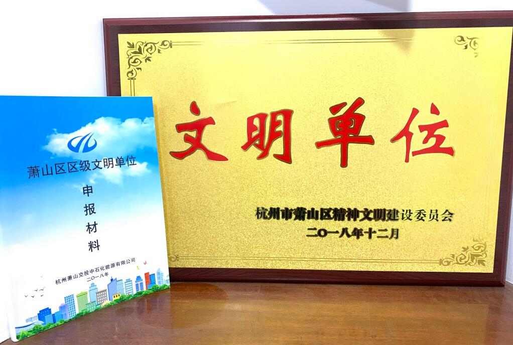 繼獲得蕭山區“工人先鋒號”、“青年文明號”、“巾幗文明崗”、義橋鎮“實繳稅收超伍佰萬元突出貢獻企業”榮譽稱號后,交投能源公司在精神文明建設之路上又邁出了可喜的一步,首次被評為蕭山區級文明單位。