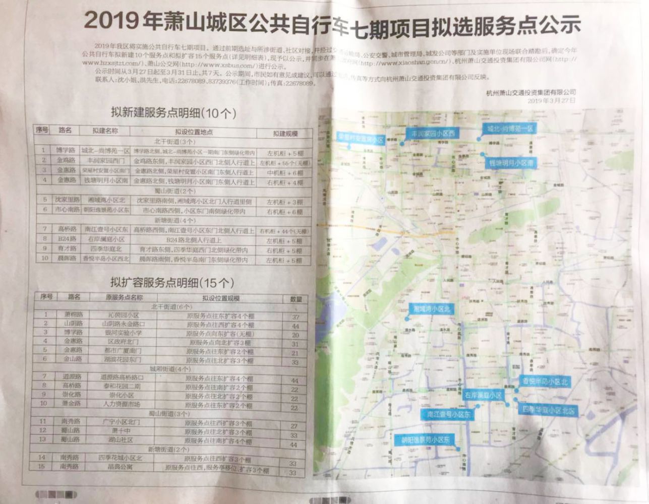為推進市區公共自行車建設,通過前期選址與所涉街道,社區對接,并經過交通運輸局、公安交警、城市管理局、城發公司等部門及實施單位現場聯合踏勘后,確定今年公共自行車擬新建10個服務點和擬擴容15個服務點,現已完成選點公示工作和立項,后續工作正有序展開。