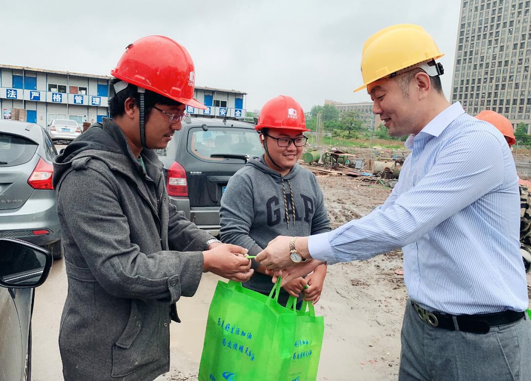 此次活動由公司董事長趙宇帶隊前往蜀山街道橋頭陳加油站項目施工現場,慰問奮戰在一線的工人,為他們送上公司的問候和關懷,并發放勞動節慰問品,以此鼓舞斗志、激發勞動熱情。