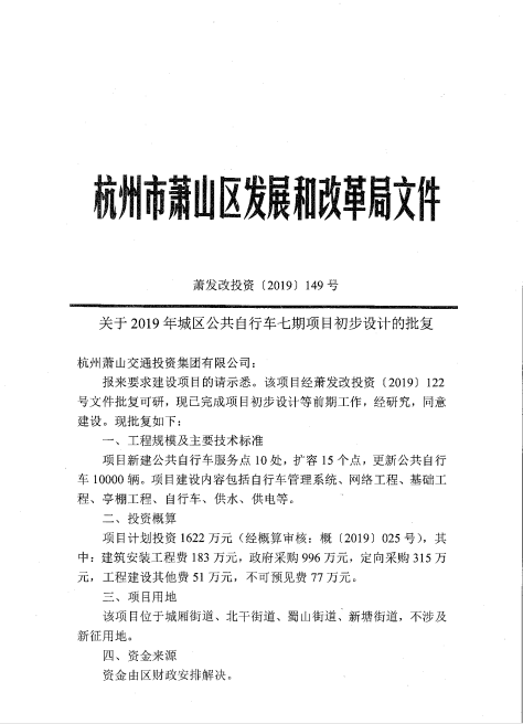 為推進(jìn)市區(qū)公共自行車建設(shè),通過前期選址與所涉街道,社區(qū)對接,2019年蕭山城區(qū)公共自行車七期項目確定新建服務(wù)點10處,擴(kuò)容15處,更新公共自行車10000輛。